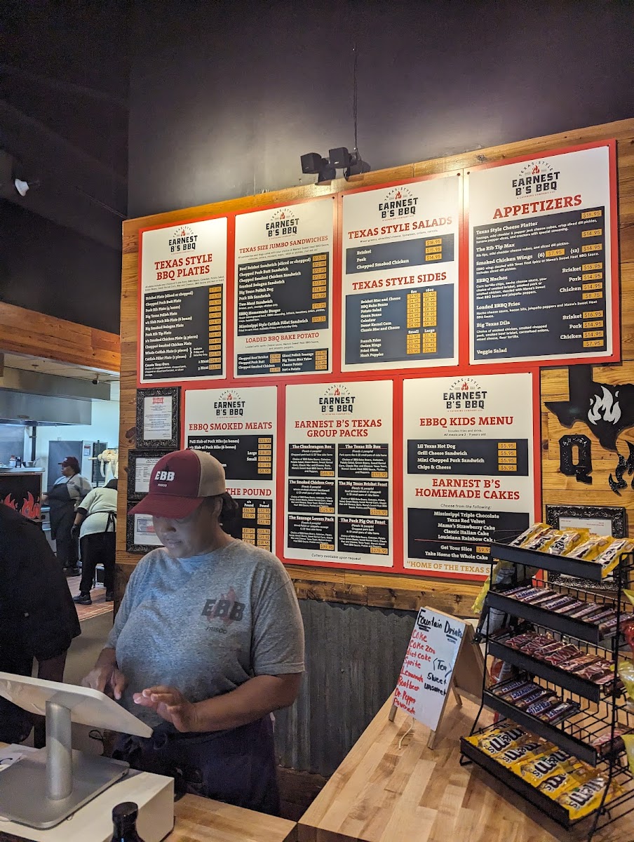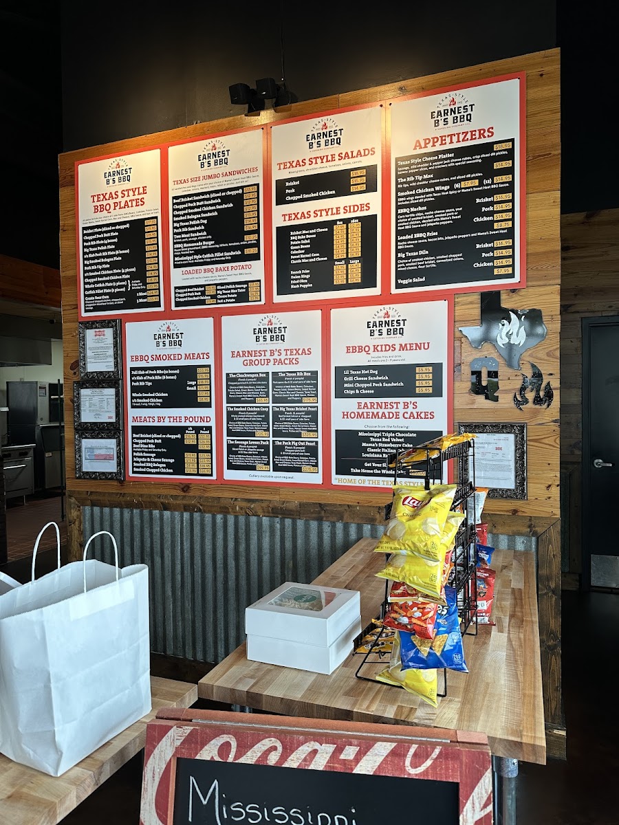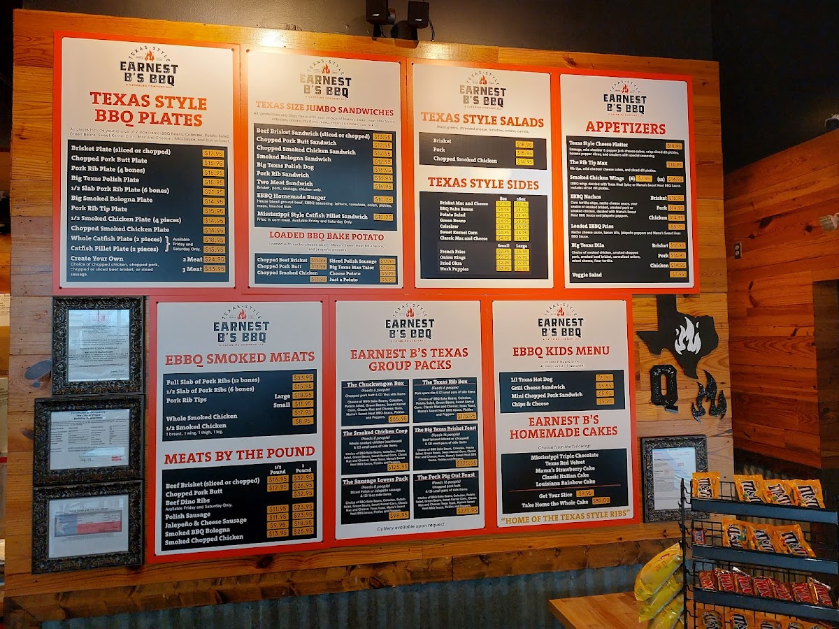 Welcome to Earnest B's BBQ, a delightful gem nestled in Frisco, Texas. Known for its nostalgic charm and warm hospitality, this BBQ haven offers a mouthwatering menu that will tantalize any food lover's palate. The centerpiece is their expertly smoked meats, including tender brisket, flavorful chopped pork, and zesty jalapeno & cheese sausage, all available by the pound.
